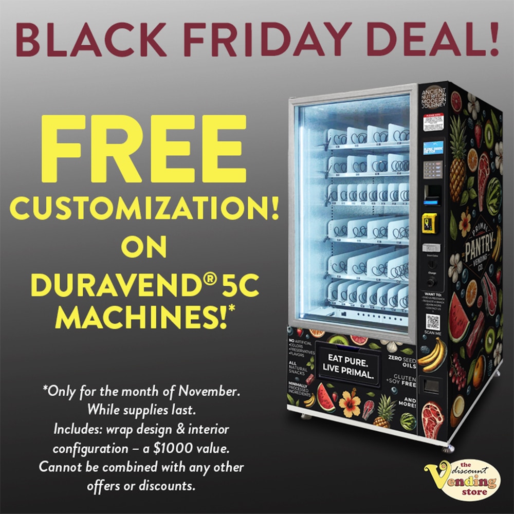 It is great to know if I have any issues with my machine, I can call The Discount Vending Store and I am not alone. I also love the eye-catching decals on my machine. When I am seeking another vending machine you can count on me looking to The Discount Vending Store for my purchase.Ray Sullins
